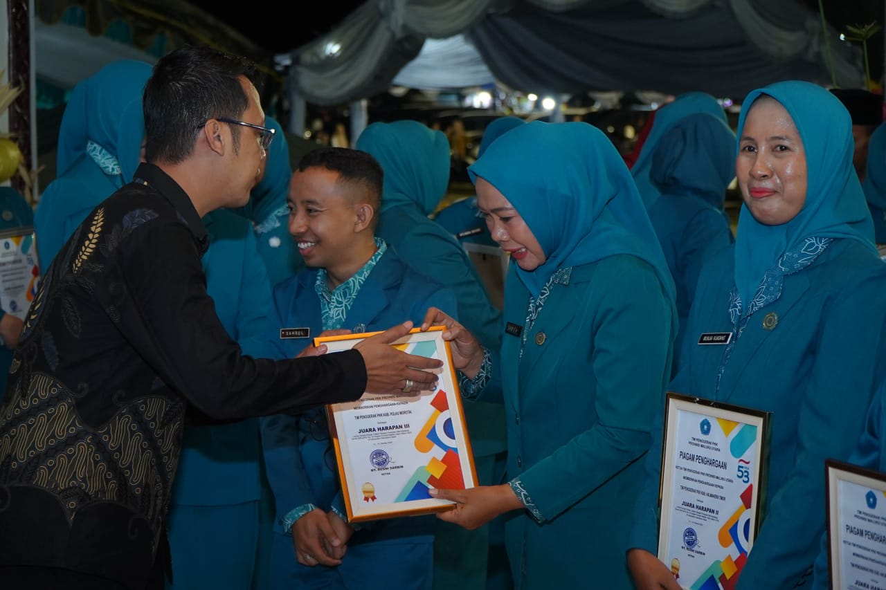Juara Harapan 1 Lomba Gelar UP2K PKK, Juara Harapan 2 Lomba Penyuluh Kader, Juara Harapan 3 Lomba Senam Kreasi dalam rangka Hari Kesatuan Gerak (HKG) PKK ke 53 Tahun 2025 Tingkat Provinsi Maluku Utara Tahun 2025.